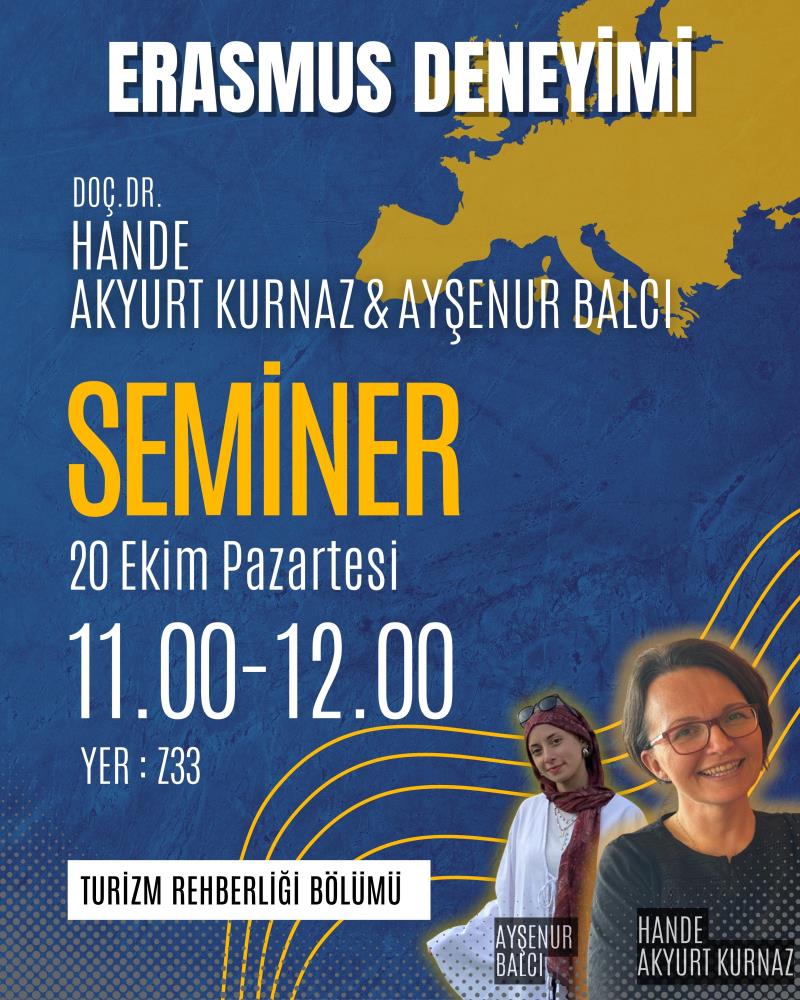 Turizm Rehberliği Bölümü, Erasmus programına katılan akademik ve öğrenci temsilcilerinin deneyimlerini aktardığı bir toplantıya ev sahipliği yaptı. Bölüm öğretim üyesi ve Erasmus koordinatörü Doç. Dr. Hande Akyurt Kurnaz, Erasmus personel hareketliliği kapsamında edindiği gözlemleri ve iyi uygulama örneklerini katılımcılarla paylaştı. Sunumunda, uluslararasılaşma sürecinde akademik iş birliklerinin önemi vurgulandı.